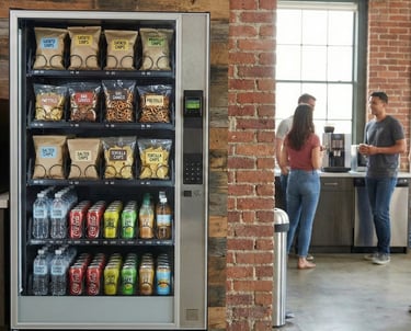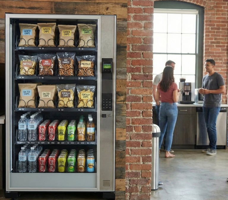 Vending machines allow 24/7 access to snacks and beverages for your employees and guests.
